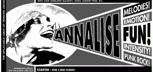 “Went there. had an afternoon bath at the Air Keroh’s posh jungle retreat/chalets – We were pogoing on the beds and tables at one of the houses. Lots of food but ultimately DIDN’T PLAY due to the pissing rain. Interviewed live on the local RTM radio too.”